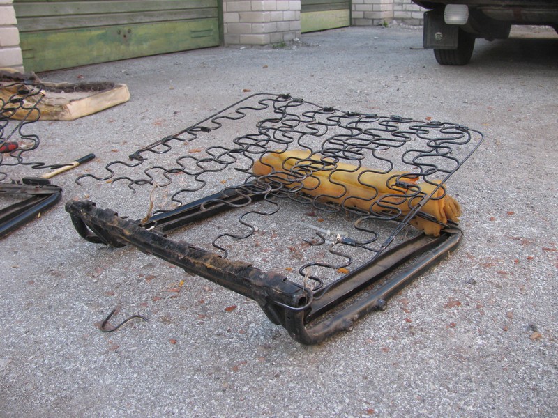 Olen näinud üsna logusid istmeid, kuid see projekt ületas kindlasti kõik seninähtu. Seljatugi ei püsinud seetõttu üleval, et istme alusraam oli seljatoe kinnituse kohalt pooleks murdunud. Peale selle polnud istmepõhjal ühtegi tervet vedru.